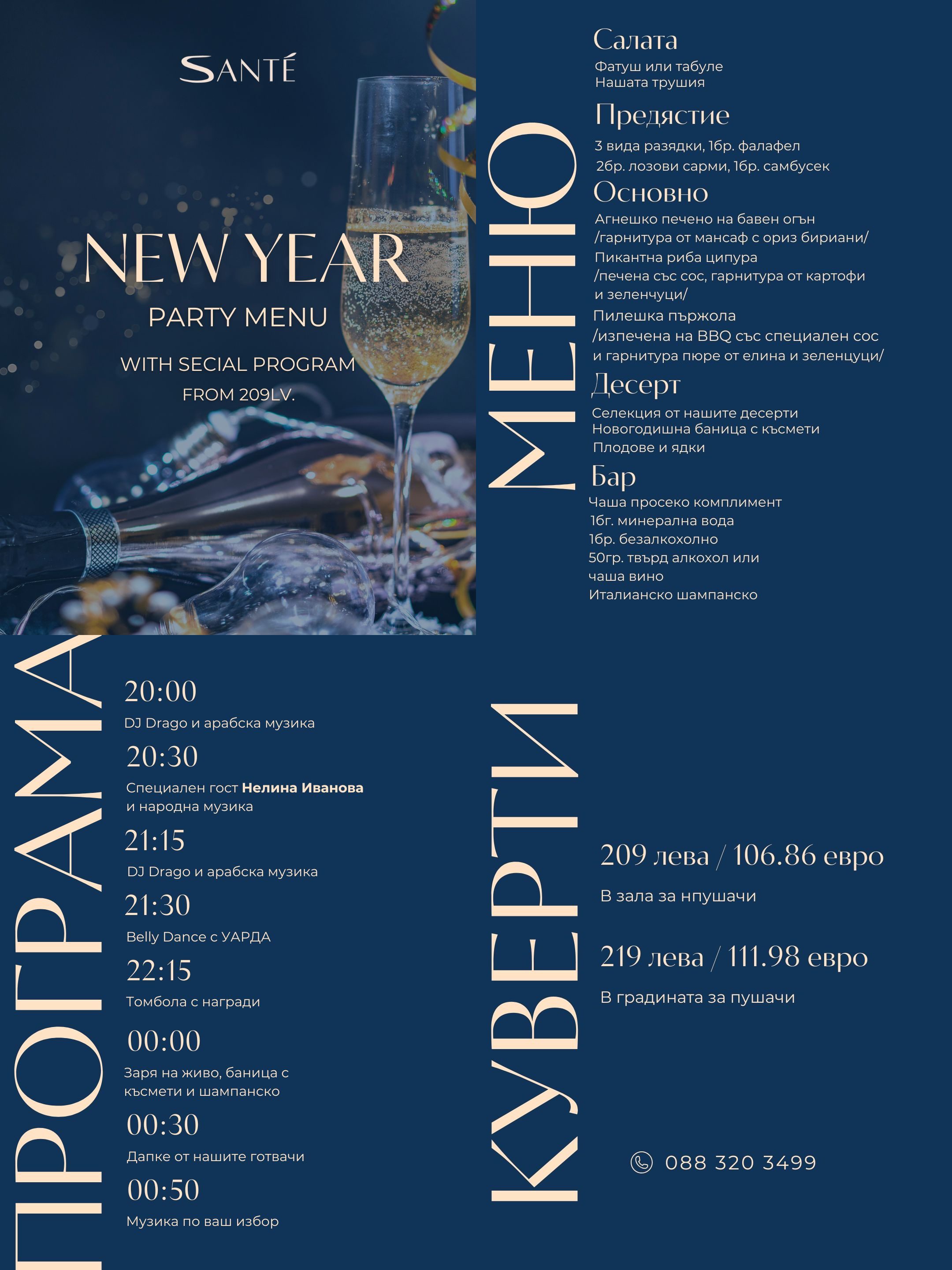 Куверт 209 лв в зала за непушачи и 219 в закритата градина за пушачи.